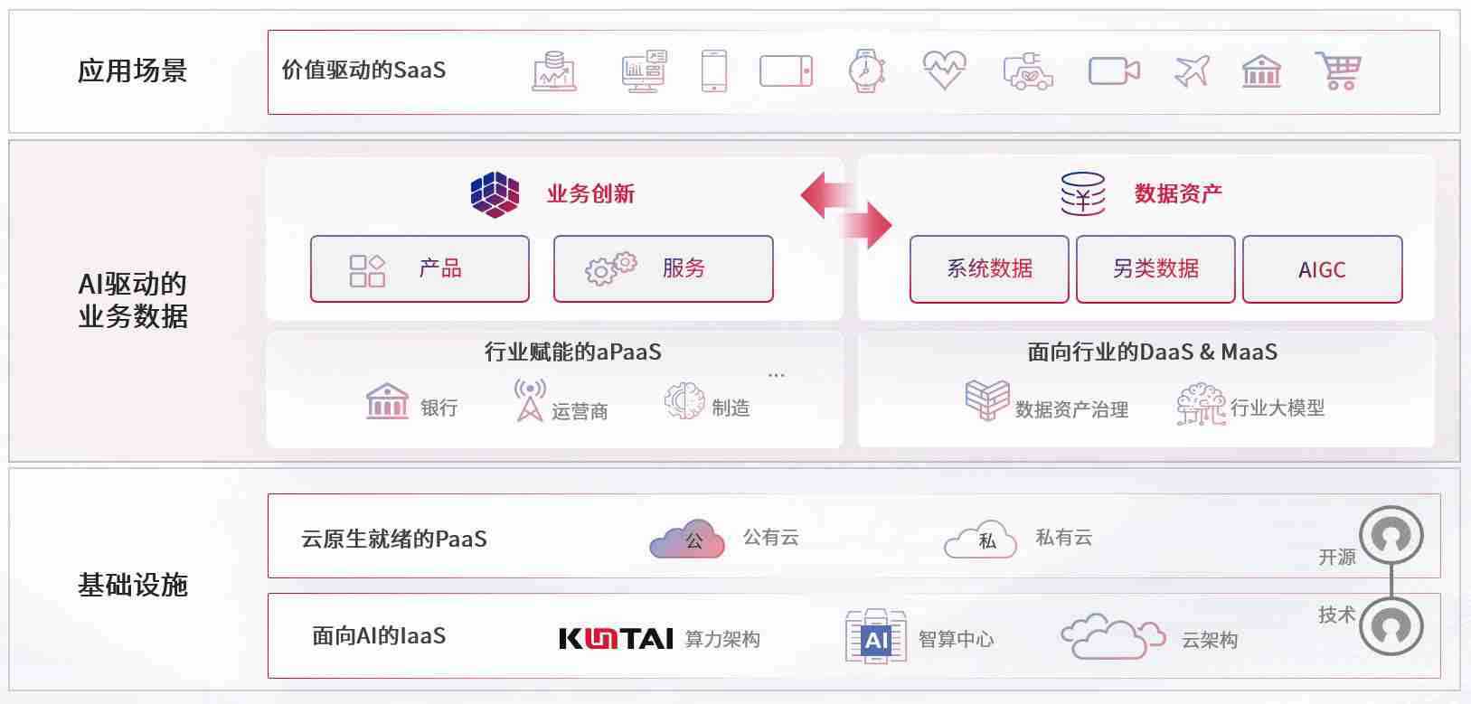 数字时代,,,,围绕企业数字化转型的关键要素,,,,manbet数码开创性的提出数云融合战略和技术体系框架,,,着力在云原生、、、、数字原生、、、AI原生和信创产业上架构产品和服务能力,,,为处在不同数字化转型阶段的快消零售、、汽车、、金融、、、医疗、、政企、、、教育、、、、运营商等行业客户提供泛在的敏捷IT能力和融合的数据驱动能力,,,构建跨界融合创新的数字业务场景和新业务模式,,,助力企业级客户建立面向未来的核心能力和竞争优势,,全面推动社会的数字化、、智能化转型升级。。。